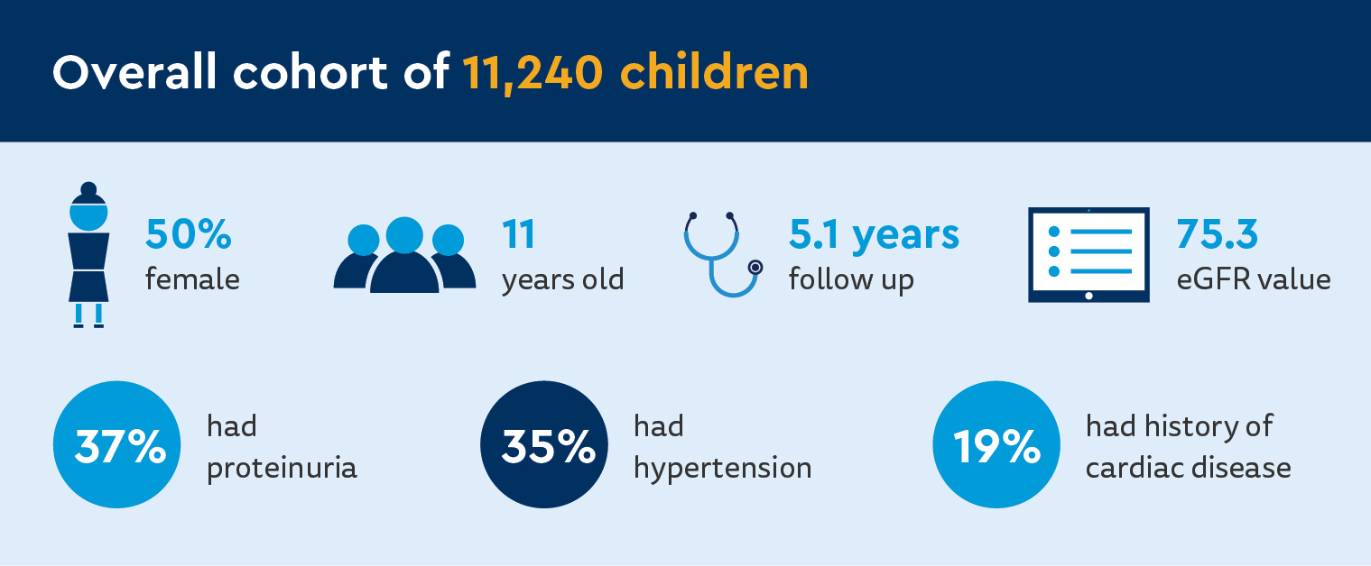 - Comparable to findings from adult cohort studies assessing kidney disease progression
