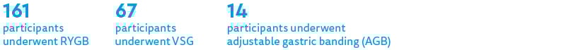 During the three-year period of observation, BMI decreased by 27% overall (28% for RYGB, 26% for VSG and 8% for LAGB).