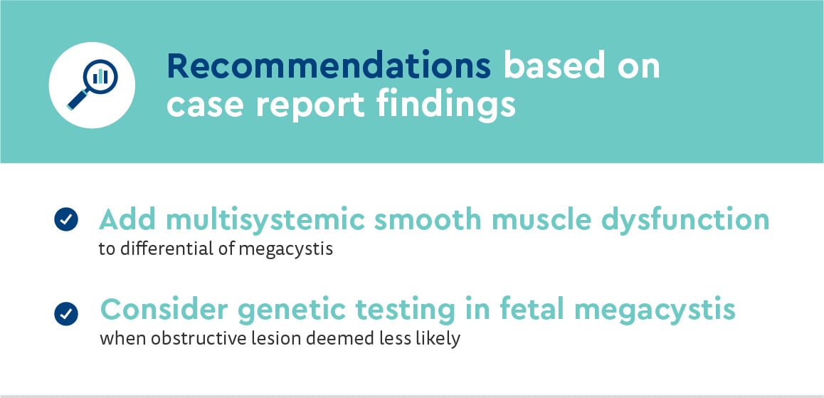 - Consider multisystemic smooth muscle dysfunction in cases of fetal megacystis, especially with atypical bladder outlet obstruction