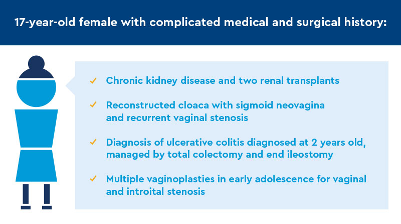 Case overview: review of patient with colon vaginoplasty and history of ulcerative colitis