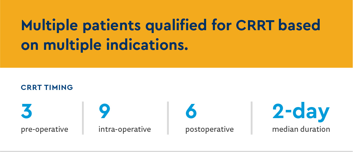 - 9 Children’s Hospital Colorado patients in this case series received CRRT during liver transplant.