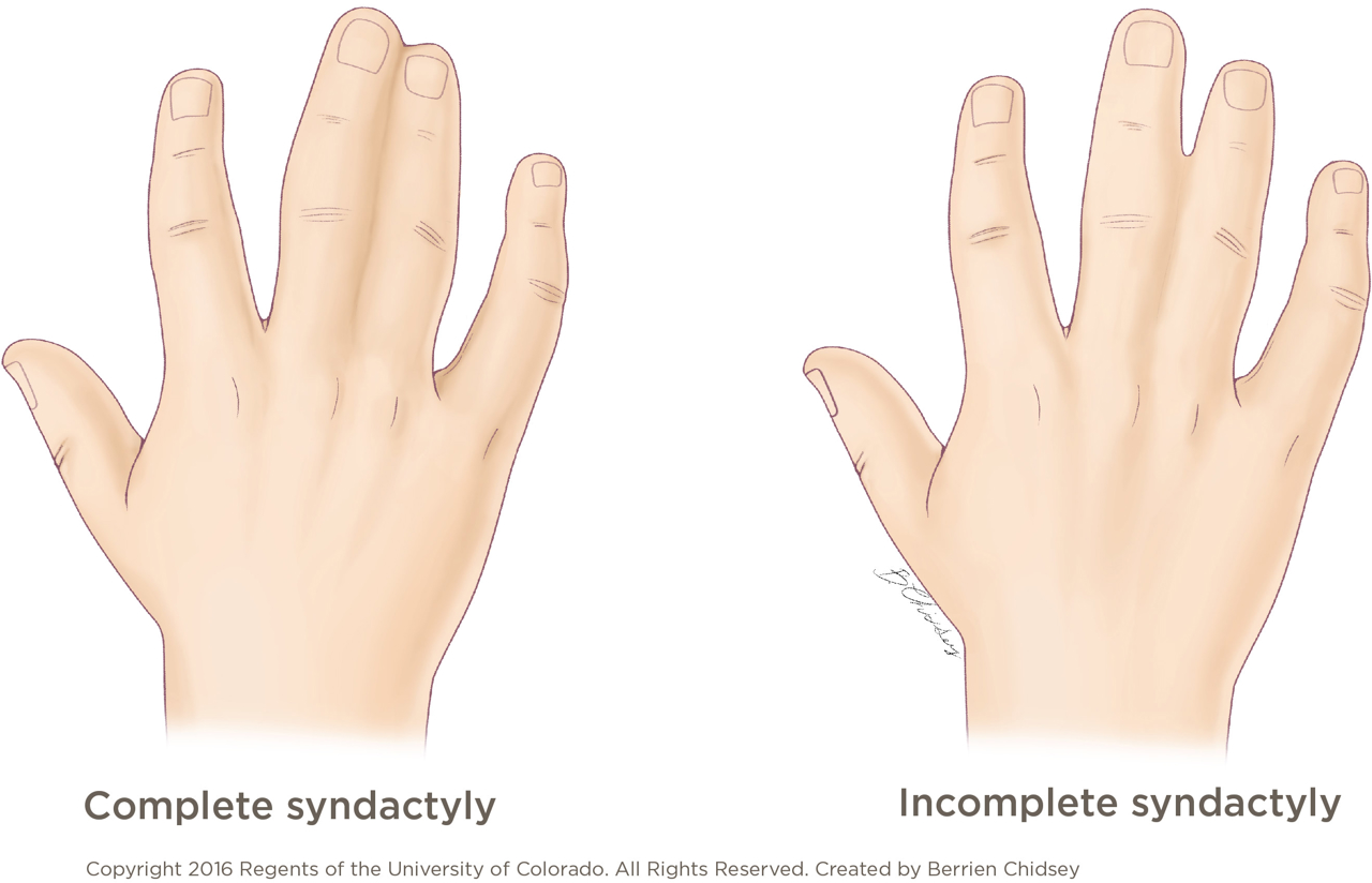 • Complete: fingers or toes are joined completely the length of the finger or toe