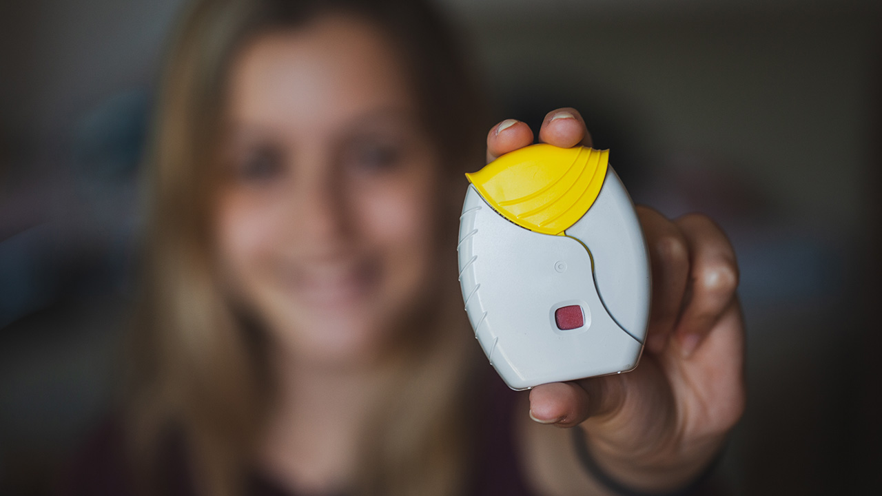The Flexhaler is a handheld dry powder inhaler that delivers budesonide, an anti-inflammatory steroid, to your child’s lungs. This is not a relief medication, so your child should not use it during a serious or sudden asthma attack.