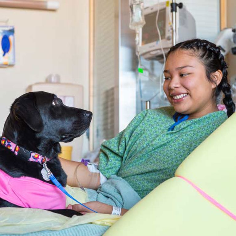 To request assistance from a medical dog, your child must have a clinical or therapeutic need. A team member may request support through the medical chart. The child life team evaluates the request and works to accommodate it according to needs and availability.