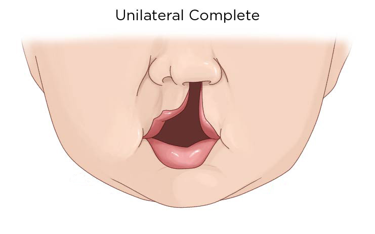 Unilateral cleft: a split or opening (cleft) in one side of the lip or palate; can be completely open or partially slit