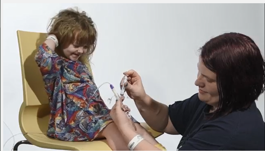 3. Your child’s g-tube is the width of a chopstick and is held inside their stomach by a water-filled balloon or an internal disk.